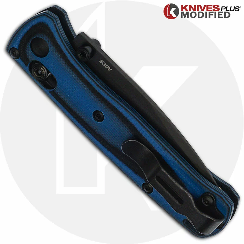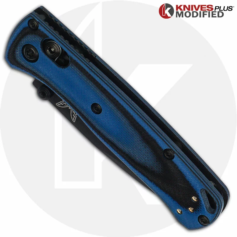 MODIFIED Benchmade Mini Bugout 533BK Knife + KP Contoured Black / Cobalt Blue G10 Scales