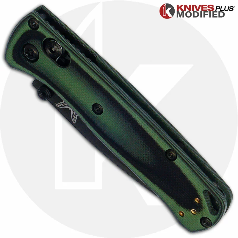 MODIFIED Benchmade Mini Bugout 533BK Knife + KP Contoured Black / Zombie Green G10 Scales