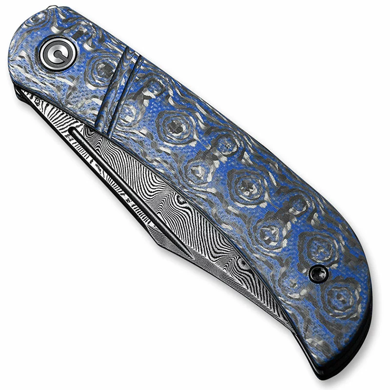 CIVIVI Knives: CIVIVI Appalachian Drifter, Black Damascus with Layered Blue G10 / Rose Carbon Fiber, WE-C2015DS-2