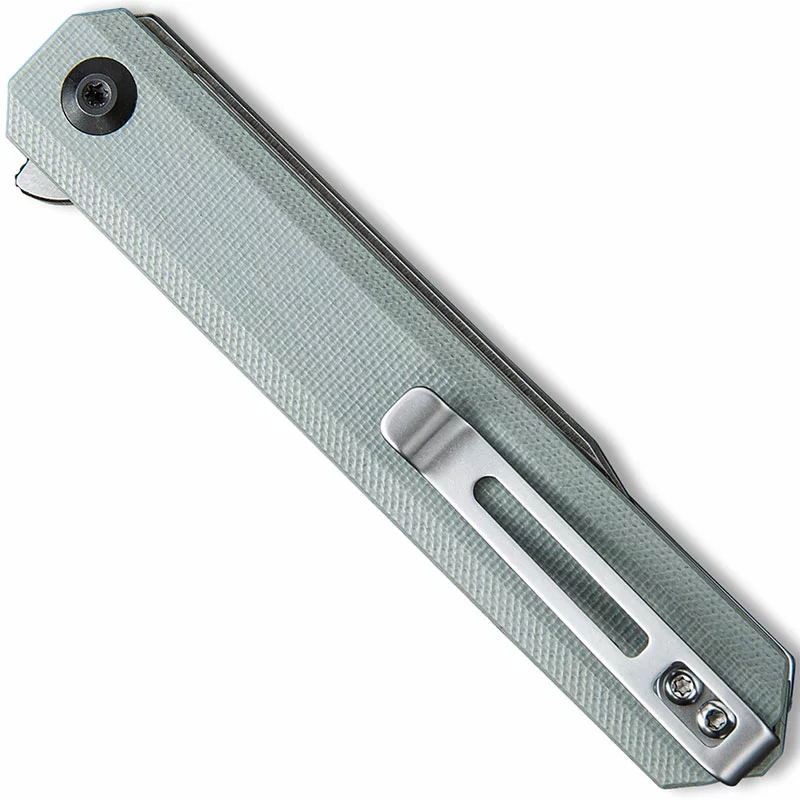 The C917A CIVIVI Chronic is a sleek value price EDC produced by CIVIVI, a subsidiary of WE Knife Company, that features a 3.22 inch clip point blade made of 9Cr18MoV stainless steel, .12 inches thick, with a Rockwell hardness of 58-60, a hollow grind, satin finish and a flipper for ambidextrous one hand opening. The slim profile gray G10 handle, 4.10 inches closed, has a pivot with steel ball bearing support for smooth opening, gray stainless steel liners and gray G10 backspacer for strength, a sturdy liner lock and a side to side reversible deep carry stainless steel pocket clip mounted at the butt end. This WE CIVIVI Chronic Knife has an overall open length of 7.32 inches, and it weighs 2.50 ounces. Made in China.