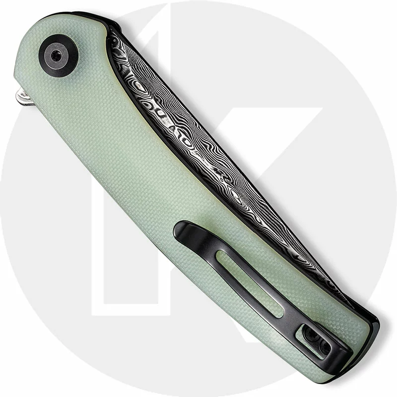 CIVIVI Knives: CIVIVI Mini Asticus Knife, Black Hand Rubbed Damascus, Natural G10 Handle, WE-C19026BDS1