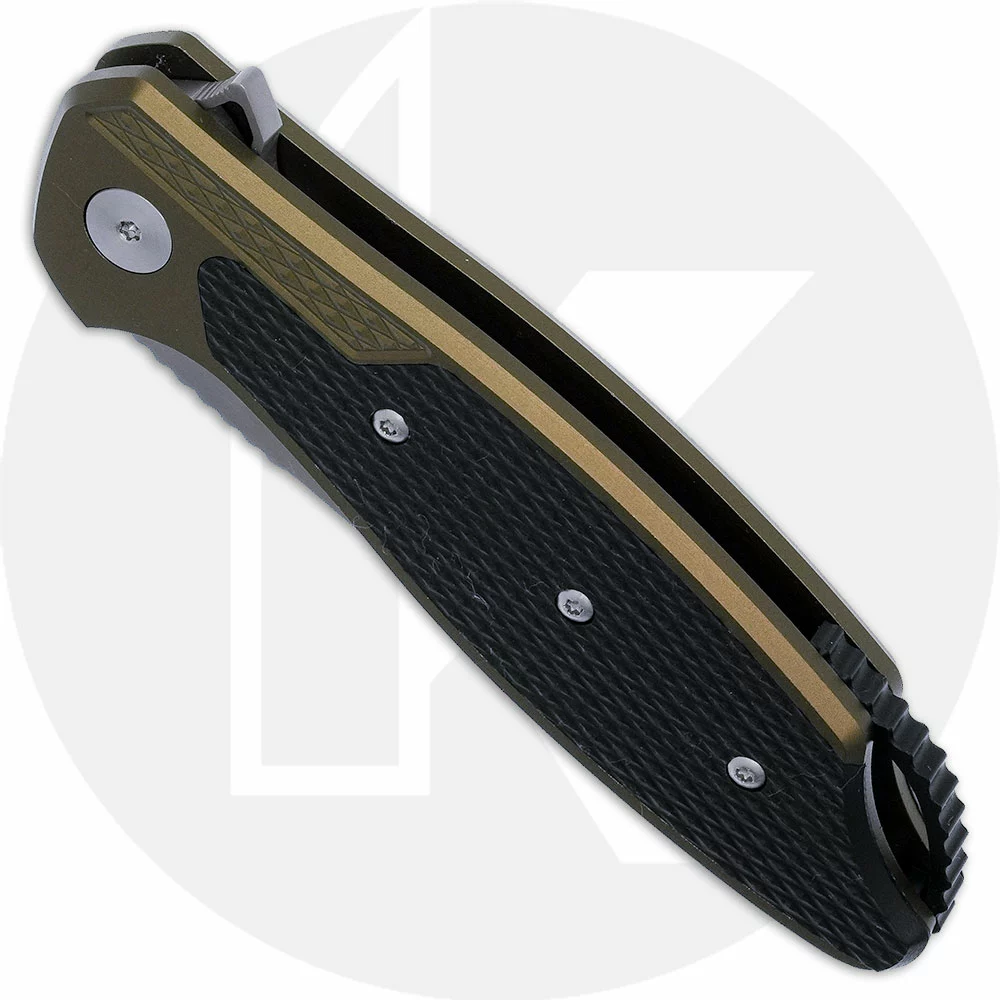 The K360GXP CRKT Jake Knife, designed by Ken Onion of Kaneohe, Hawaii, is an eyecatching EDC that features a 3.32 inch drop point blade made of Sandvik 12C27 stainless steel, .14 inches thick, with a two tone bead blast / brushed finish, notched thumb rest for secure grip, and a flipper for ambidextrous one hand opening. The OD Green aluminum handle, 4.60 inches closed, has the IKBS Ball Bearing Pivot System for smooth, fast opening, textured black G10 inlay, a liner lock, notched back spacer with integral lanyard hole and a pocket clip. The CRKT Jake Knife has an overall open length of 7.94 inches, and it weighs 3.8 ounces.