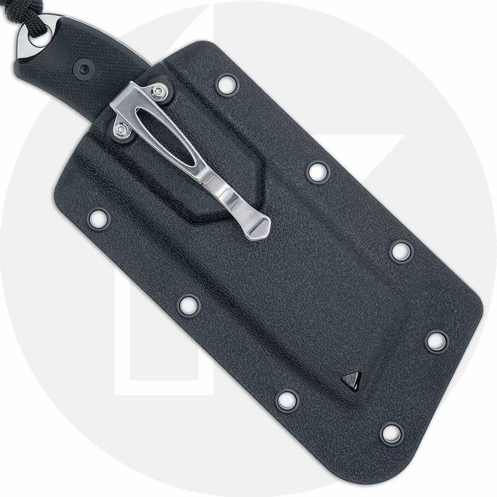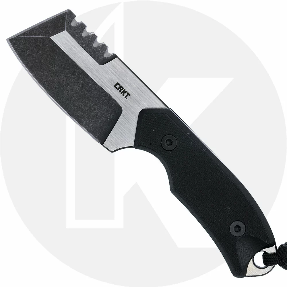 The 4036 CRKT Razel Compact, designed by Jon Graham of Cleveland, Tennessee, is a compact EDC fixed blade addition to the Razel Family that features a 2.32 inch chisel blade made of tough D2 tool steel, .13 inch thick, with a two tone black stonewash and satin finish, and a Veff Flat Top Serrated spine area. The Razel Compact has full tang construction for strength, black G10 scales and a pronounced finger groove for secure grip, and a lanyard hole with braided fob. A black thermoplastic sheath with clip for pocket carry is included. The Razel Compact has an overall length of 5.27 inches, and it weighs 3.0 ounces.