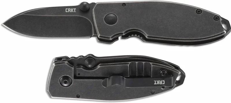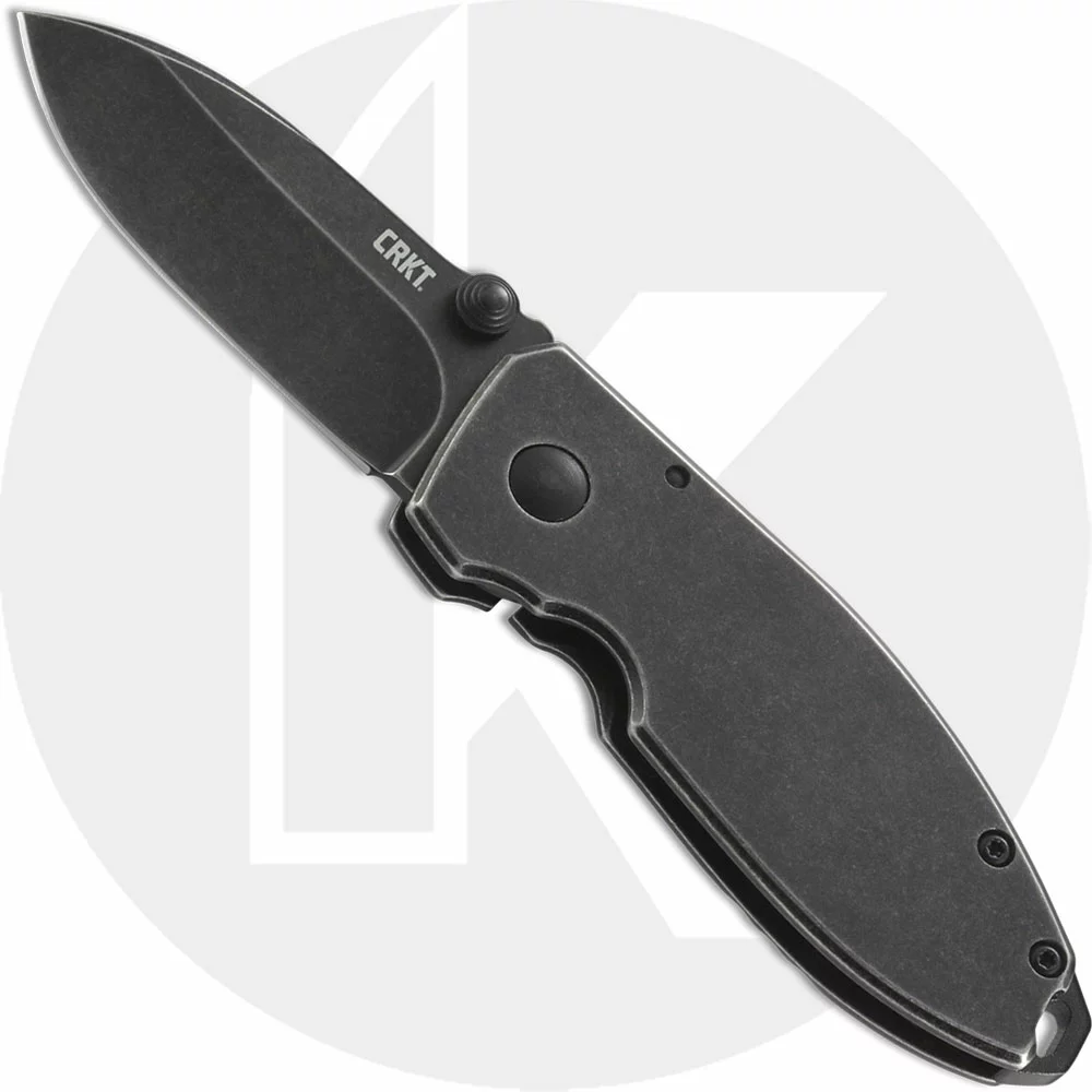 The illustrated CRKT Knife is the CRKT Squid Knife, designed by Lucas Burnley, that features a 2.14″ drop point blade made of 8Cr13MoV stainless steel, .110″ thick, with a Rockwell hardness of 58-60. The blade of this CRKT knife has a non reflective black stonewash finish, a notched thumb ramp for secure grip, and dual thumb studs for ambidextrous one hand opening. The black stonewashed contoured stainless steel handle, 3.49″ closed, has a sturdy frame lock and a lanyard hole. A discreet carry steel pocket clip is mounted at the butt end of this CRKT Knife. The Squid Knife has an overall open length of 5.71″, and it weighs 3.4 ounces.