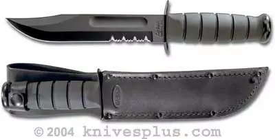 Black KABAR Knife, Part Serrated with Leather Sheath, KA-1212
