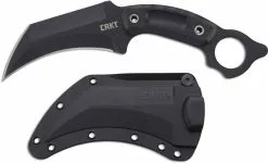 The illustrated KABAR Knife is the KABAR Short Black Tanto Knife with a 5 1/4″ part serrated tanto blade made of 1095 cro-van carbon steel. The blade of this KABAR knife has a non reflective black epoxy powder coat. The black oval Kraton G handle has a black metal butt cap and guard. A black leather sheath is included with this KABAR knife. The KABAR Short Black Tanto Knife has an overall length of 9 3/8″, and weighs, .4 pound.