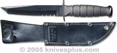 KA-BAR Knives: KABAR Short Black Tanto Knife, Part Serrated Leather Sheath, KA-1255