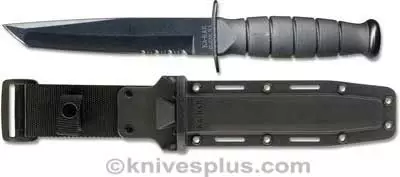 KA-BAR Knives: KABAR Short Black Tanto Knife, Part Serrated Synthetic Sheath, KA-5055