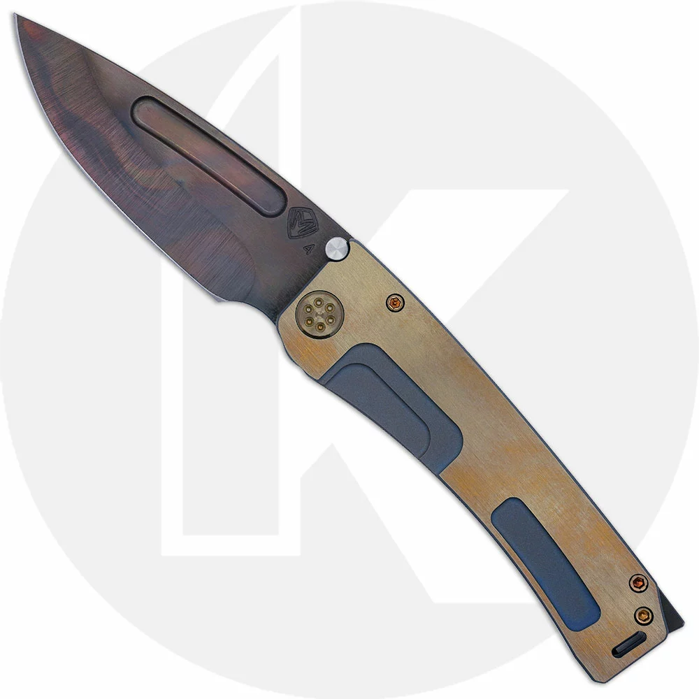 Medford Knives: Medford Marauder-H Knife, S45VN Vulcan Drop Point, Blue and Bronze Ti, MKT-0454VD