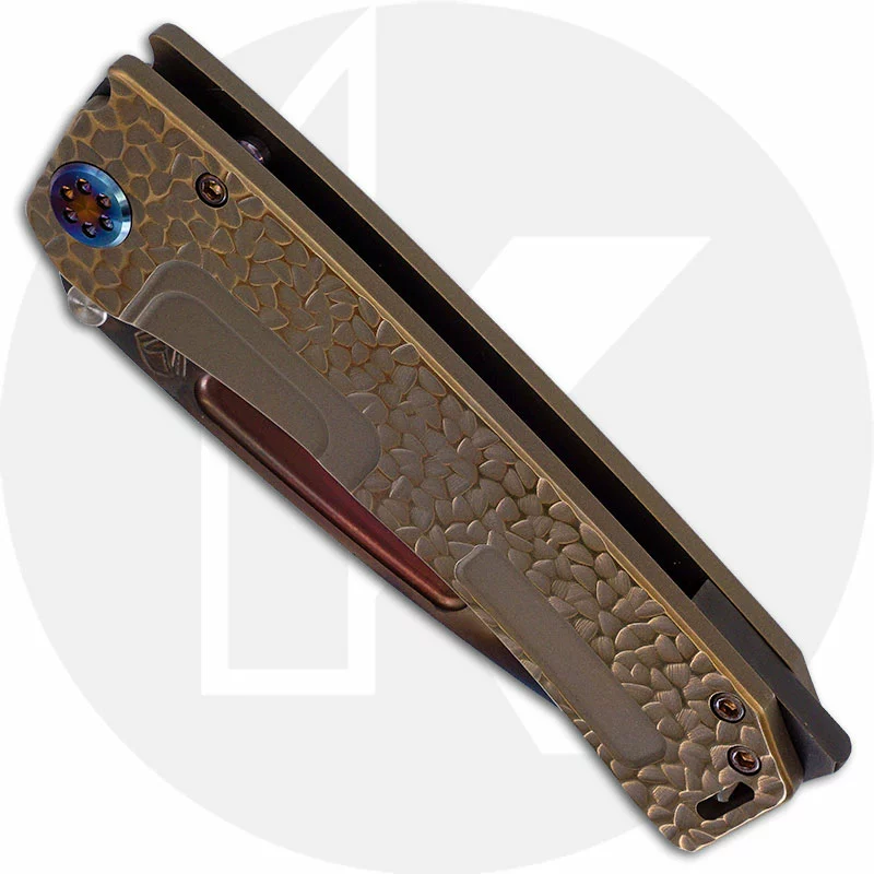 Medford Knives: Medford Marauder-H Knife, Vulcan S35VN Drop Point, Gold / Bronze Hammered Titanium, MKT-045SVD-1