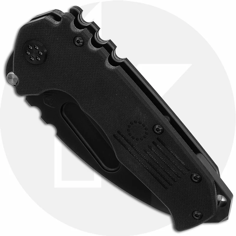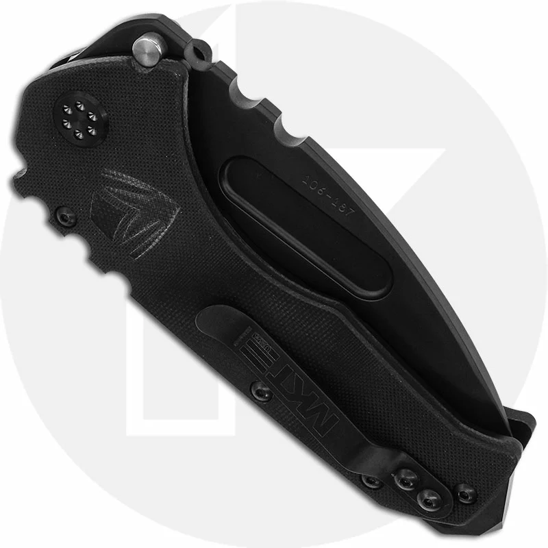 Praetorian Scout M/P … a Medford Liner Lock! This Medford Praetorian Scout M/P Knife features a 3.75 inch tanto blade made of D2 tool steel, .190 inch thick, with PVD finish, dual stops that lock up against the frame for superior strength against sideways torque, and a deep fuller that lessens weight and also serves as a thumb groove for ambidextrous one hand opening. The black G10 handle, 5.25 inches closed, has ergonomic contours and milled groove pattern for visual interest, titanium liner, sturdy liner lock, PVD hardware, PVD breaker and PVD pocket clip mounted at the butt end. The Medford Praetorian Scout M/P Knife has an overall open length of 9 inches, and it weighs 8.4 ounces. Proudly made in the USA.