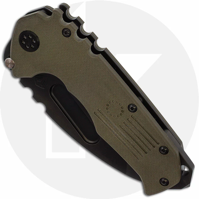 From Medford: The knife design that put Medford Knife & Tool on the map has grown up – so to speak. This newest addition to the Praetorian line up is a wicked departure from our typical design approach as it is our first liner-lock style knife. The liner is 6Al4V Titanium and the G10 scales make for a much more efficient build and lighter chassis for our standard Praetorian Tanto blade. Everything about this knife should seem familiar to the MKT customer and no corner has been cut to bring this beast of a knife to you. The Praetorian Scout M/P comes either completely blacked-out or in OD Green, with a D2 Tanto Blade, PVD Hardware, PVD Clip, PVD Breaker.