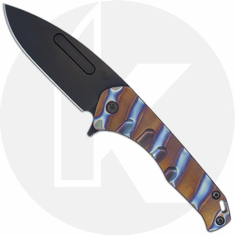 From Medford: This knife has all the sexy appeal of the standard “Slim” but the action of an auto. The flipper-cam is yummy and well placed for comfort in both the open and closed positions. The blade rides on 18 bearings and has the most satisfying snap both open and closed action. Titanium, S35Vn and all American Made. The design speaks to Greg’s design evolution and our connection to the evolving sentiments within the knife community. Not everyone wants a large aggressive tactical folder but they may want the style and performance. This knife is for them …