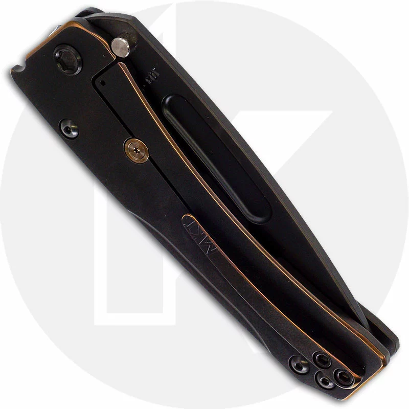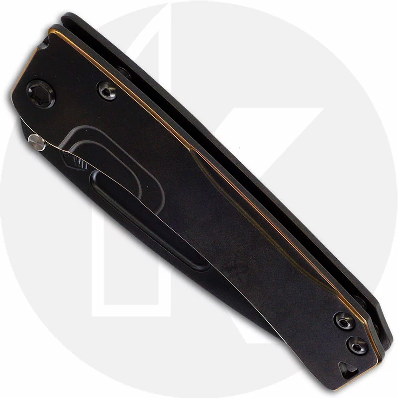 This Medford Slim Midi Knife is a gent’s style everyday carry that features a 3.25 inch tanto blade made of premium S35VN stainless steel, .125 inch thick, with PVD finish, dual stops that lock up against the frame for superior strength against sideways torque, and a deep fuller that lessens weight and also serves as a thumb groove for ambidextrous one hand opening. The slim profile titanium handle, 4.38 inches closed, has milled grooves for visual interest, a sturdy frame lock, lanyard hole, and a titanium pocket clip mounted at the butt end. The Medford Slim Midi Knife has an overall open length of 7.9 inches, and it weighs 4.1 ounces. Proudly made in the USA.