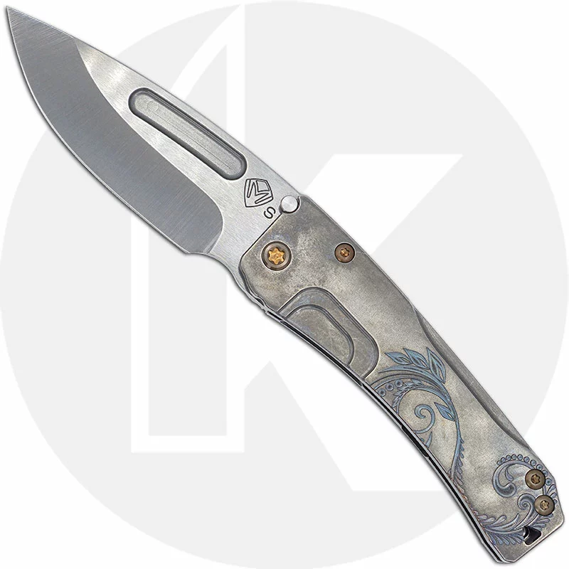 Medford Knives: Medford Slim Midi Knife, Tumbled S35VN Drop Point, Filigree Ti, MKT-201STD-2