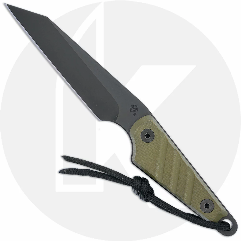 This Medford UDT-1 Knife is a compact EDC that features a 3.5 inch reverse tanto fixed blade made of premium S35VN stainless steel, .200 inch thick, with a PVD finish. The UDT-1 has full tang construction for strength, OD green G10 scales with milled grooves for secure grip, PVD hardware, and an extended pommel with integral lanyard hole. A black Kydex belt sheath with Tek-Lok is included. The Medford UDT-1 Knife has an overall length of 7.5 inches, and it weighs 4.1 ounces. Proudly made in the USA.
