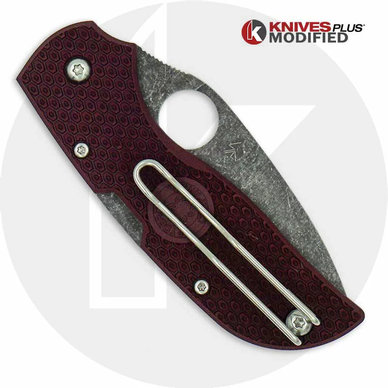 MODIFIED Spyderco Chaparral Lightweight – The Ron Burgundy – Acid Stonewash – Rit Dyed Handle – KP-C152PGY-1