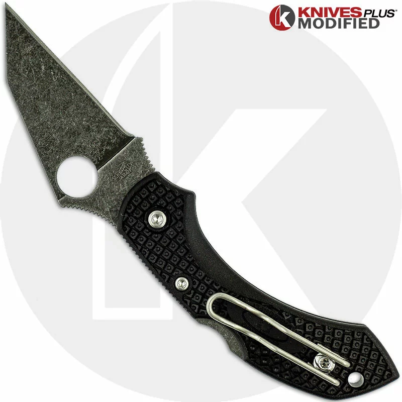 MODIFIED Spyderco Dragonfly 2 – Wharncliffe – Acid Stonewash – Regrind – Black Handle – KP-C28FPWCBK2-2
