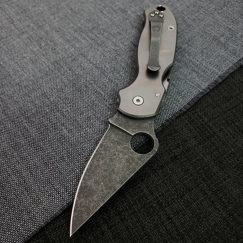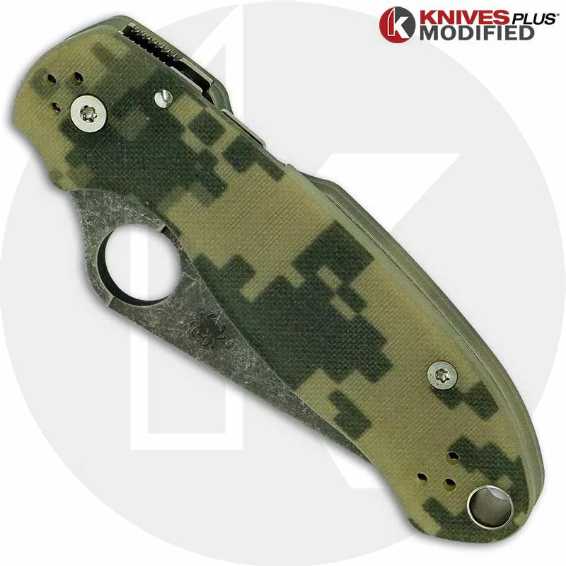 MODIFIED Spyderco Para 3 Knife ACID WASH Blade Camo G10