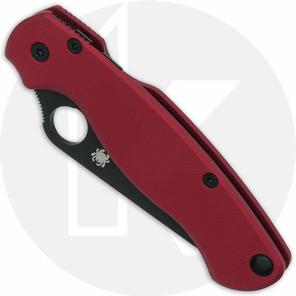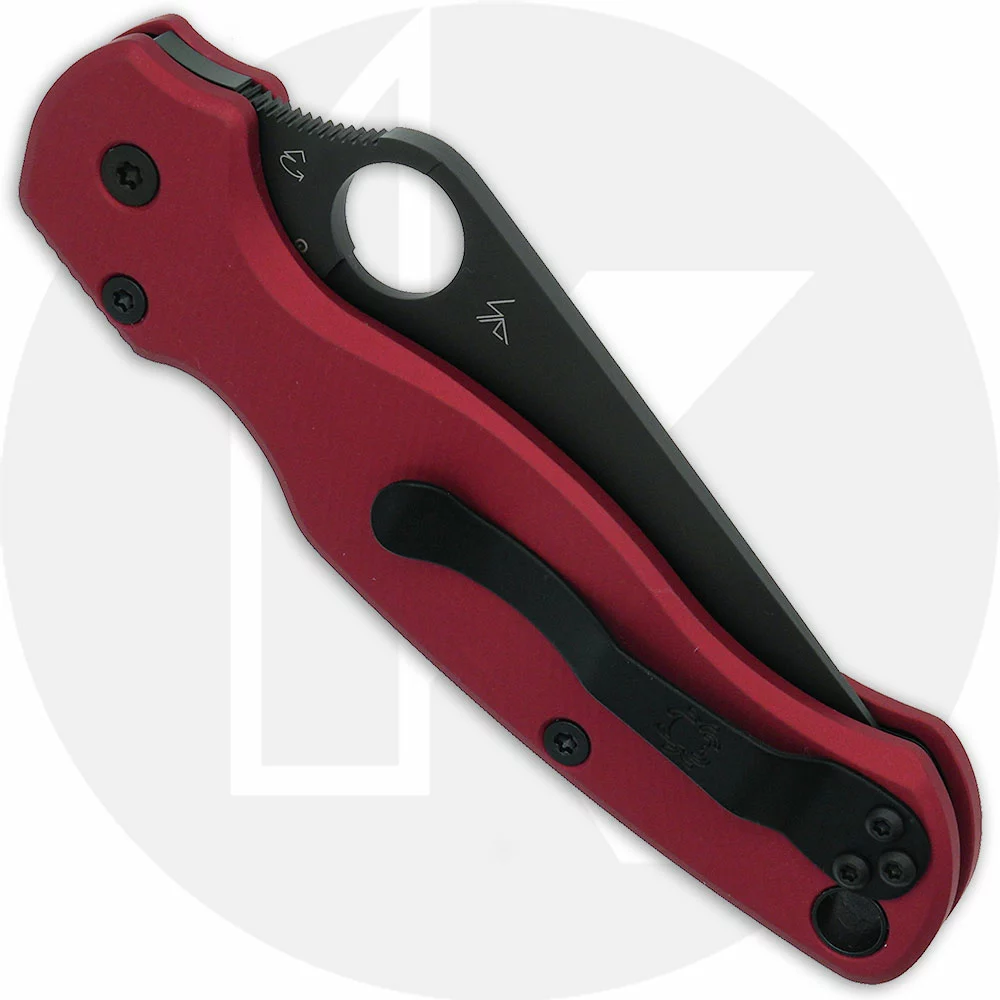 MODIFIED Spyderco Para Military 2 Knife with Black DLC Blade + AWT Agent PM2 Weathered Red Scales
