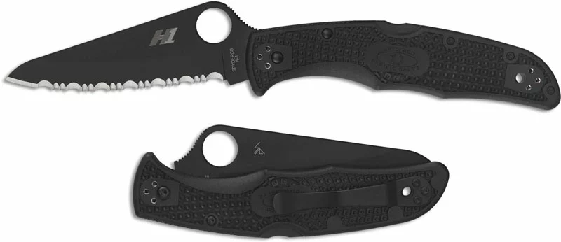 From the Spyderco 2020 Reveal Product Guide: A dynamic combination of the third-generation Endura® one-piece handle design and the ultra-corrosion-resistant properties of H-1 steel, the original Pacific Salt was an incredibly capable full-service folding knife. The original black-bladed model endured extensive military testing to become an issue item in aircrew survival kits.