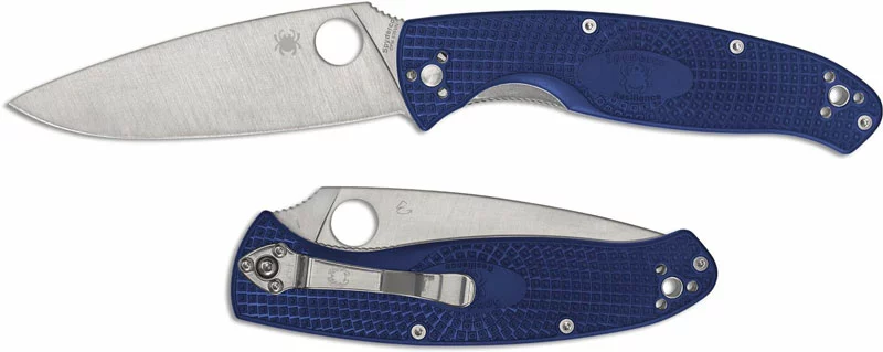 From the 2021 Spyderco Reveal 8 product guide: Compared to its G-10 handled counterpart, the Resilience Lightweight adds the enhanced grip texture and broad color palette of injection-molded FRN handle scales. This elite expression of it supercharges the design with American-made CPM S35VN blade steel — an advanced particle metallurgy stainless steel that offers an exceptional balance of edge holding, toughness, and corrosion resistance. Available with a choice of PlainEdge, CombinationEdge, or SpyderEdge blade, it also features a distinctive blue handle color.